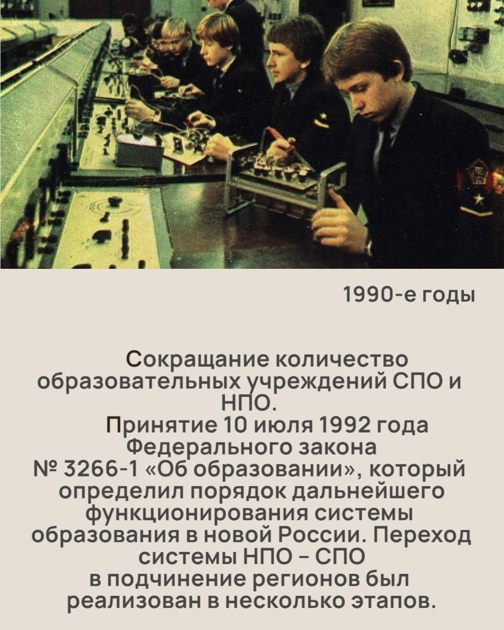 Система СПО доказала свою эффективность уже в годы Великой Отечественной войны, обеспечивая предприятия квалифицированными специалистами в условиях крайнего дефицита трудовых ресурсов. В послевоенные годы она сыграла важную роль в восстановлении экономики. В 2025 году юбилей СПО совпадает с еще одной знаковой датой – 80-летием Победы в Великой Отечественной войне, что подчеркивает тесную связь истории профобразования с героическими страницами прошлого страны.