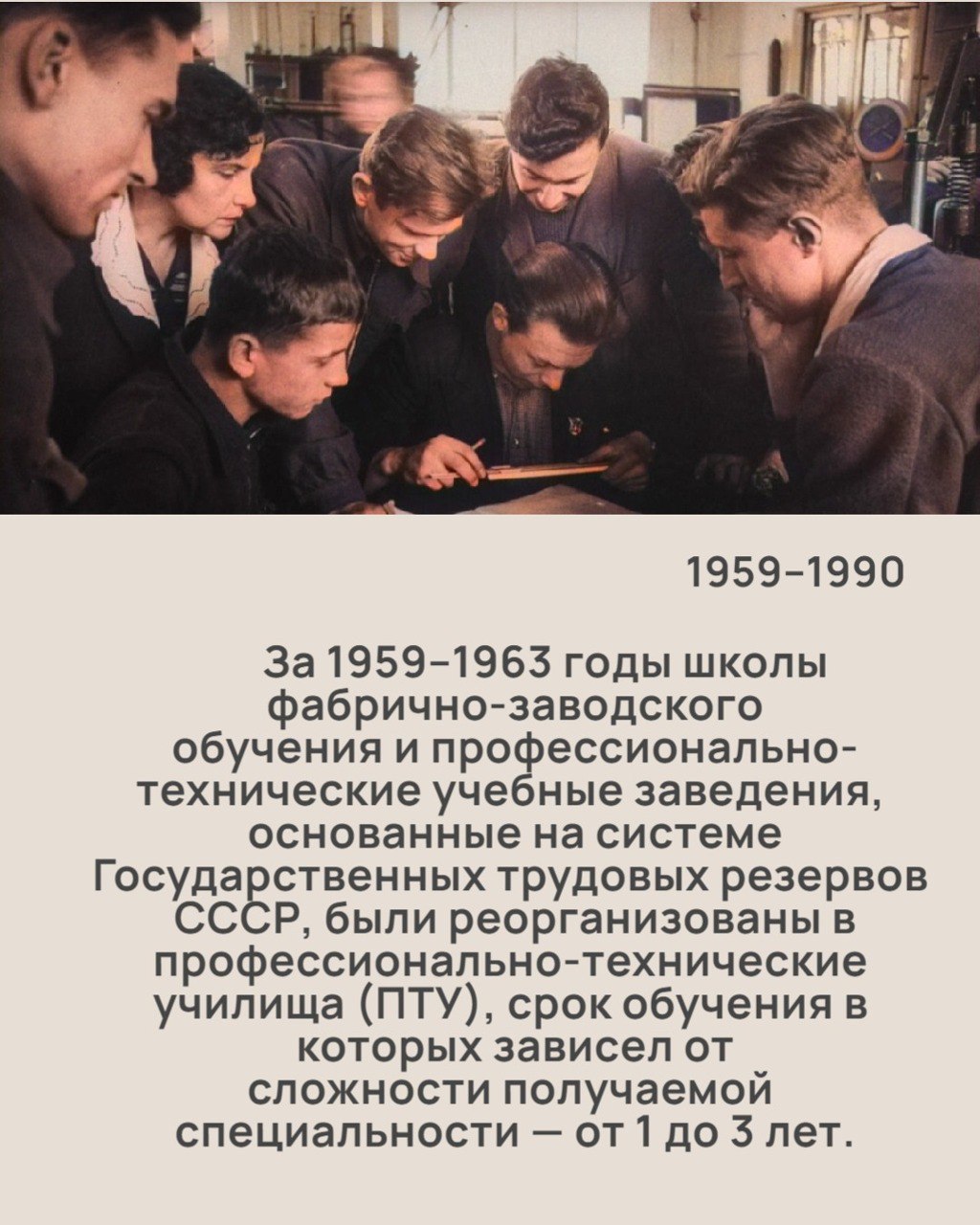 Начало истории СПО официально закреплено Указом Президиума Верховного Совета СССР от 2 октября 1940 года «О государственных трудовых резервах». Этот документ ознаменовал завершение этапа поисков эффективных форм подготовки рабочих кадров и стал фундаментом для создания стройной, централизованной системы обучения.